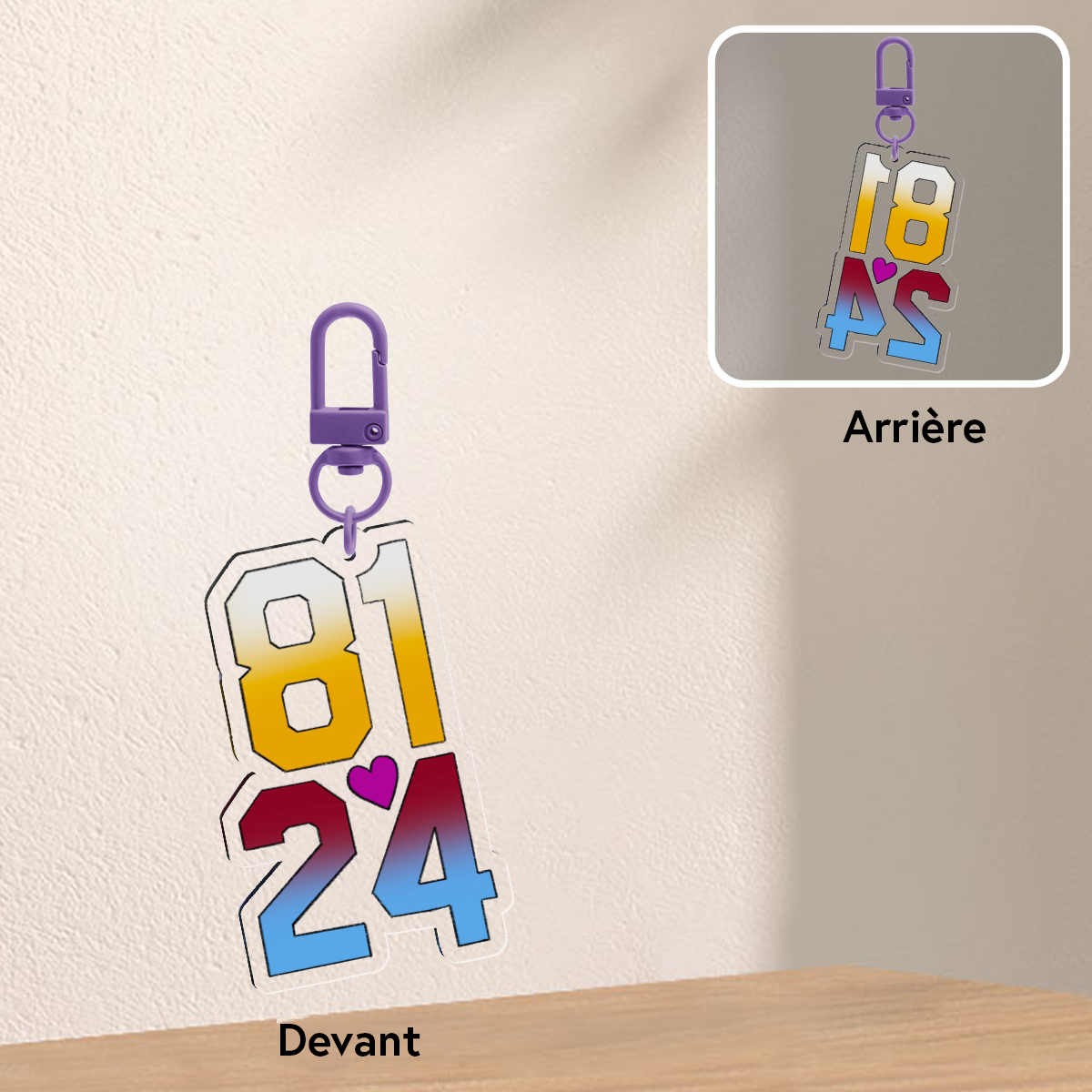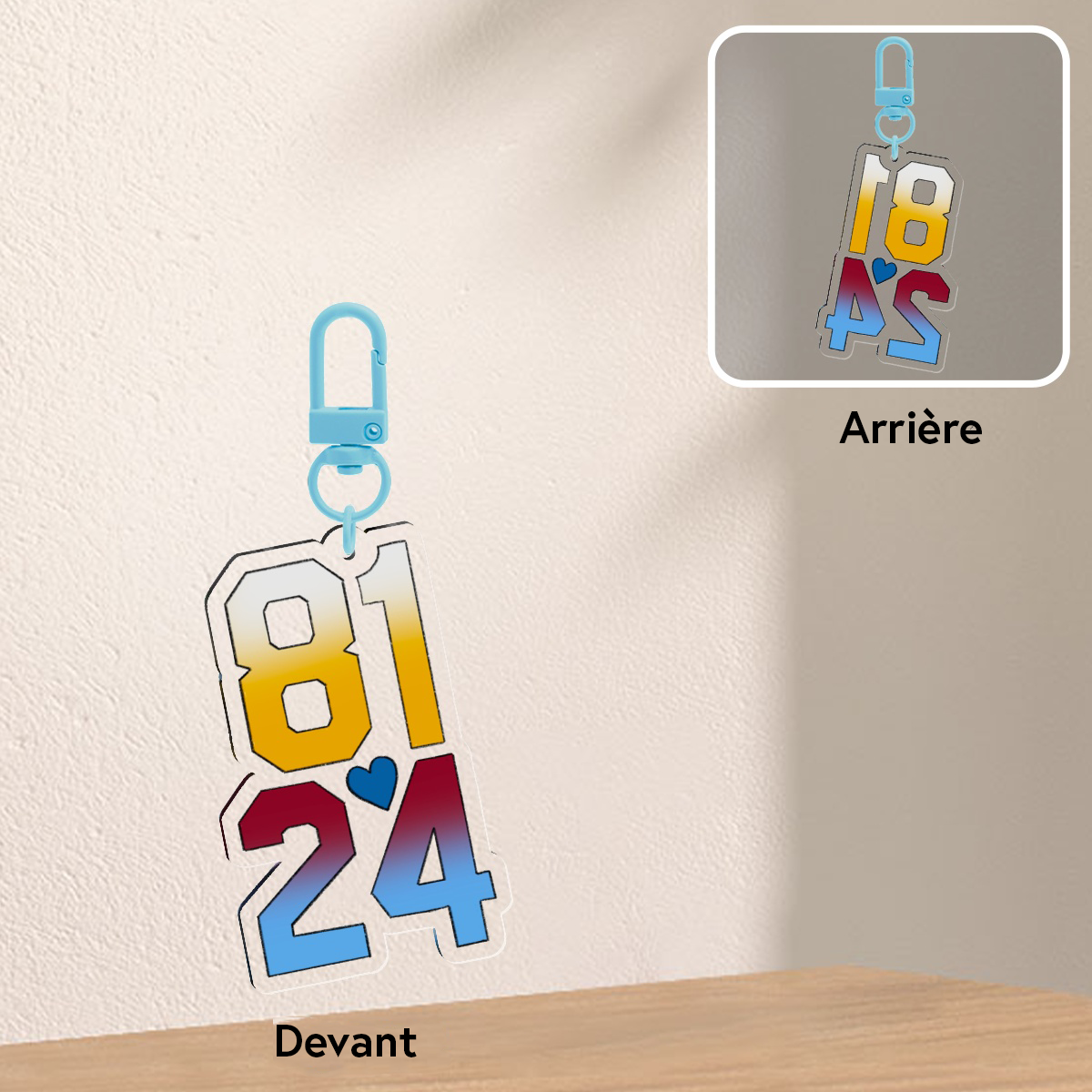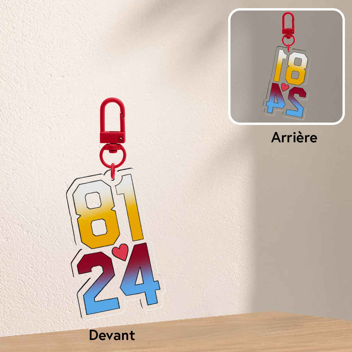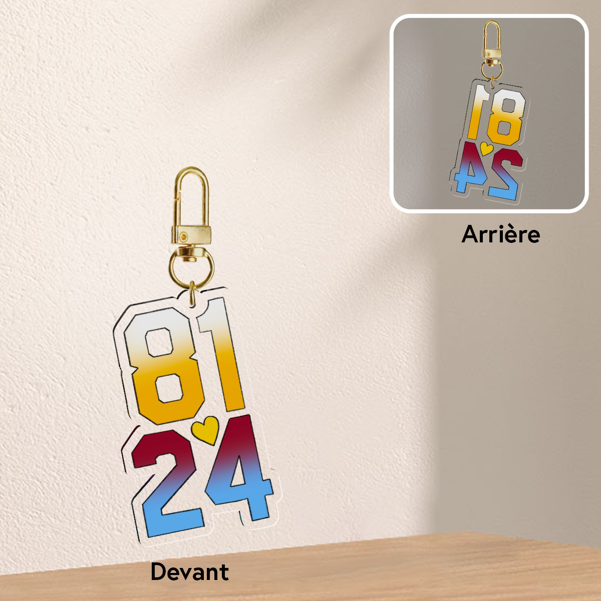 Porte-clés qui contient une illustration des numéros des jersey d’Ilya Rosanov et de Shane Hollander inspirée de la série «Heated Rivalry»